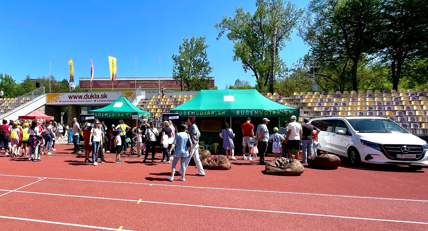 Slnečné počasie prilákalo na Deň otvorených dverí 2025 Vojenské Športové Centrum Dukla v Banskej Bystrici viac ako 5 tisíc ľudí. Za prítomnosti ministra cestovného ruchu a športu Rudolfa Huliaka, generálneho tajomníka služobného úradu Ministerstva obrany SR Petra Krajčíroviča a riaditeľa VŠC Dukla Gabriela Barana, úspešných športovcov Dukly ale predovšetkým sme nechýbali my s našimi info – entertainment stánkami a boli tak svedkami bohatého a pestrého programu s mnohými ukážkami športových disciplín.